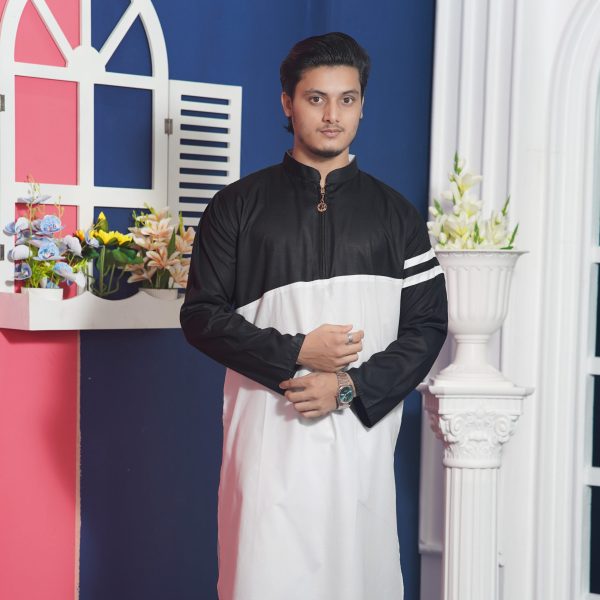 স্টাইলিশ ব্ল্যাক অ্যান্ড হোয়াইট পাঞ্জাবি – আধুনিকতার ছোঁয়ায় ঐতিহ্য