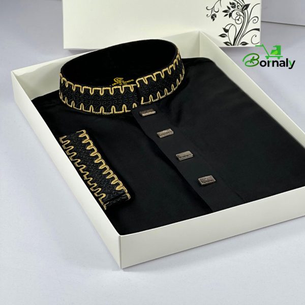 স্টাইলিশ ব্ল্যাক অ্যান্ড হোয়াইট পাঞ্জাবি – আধুনিকতার ছোঁয়ায় ঐতিহ্য