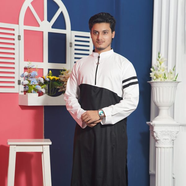 স্টাইলিশ ব্ল্যাক অ্যান্ড হোয়াইট পাঞ্জাবি – আধুনিকতার ছোঁয়ায় ঐতিহ্য